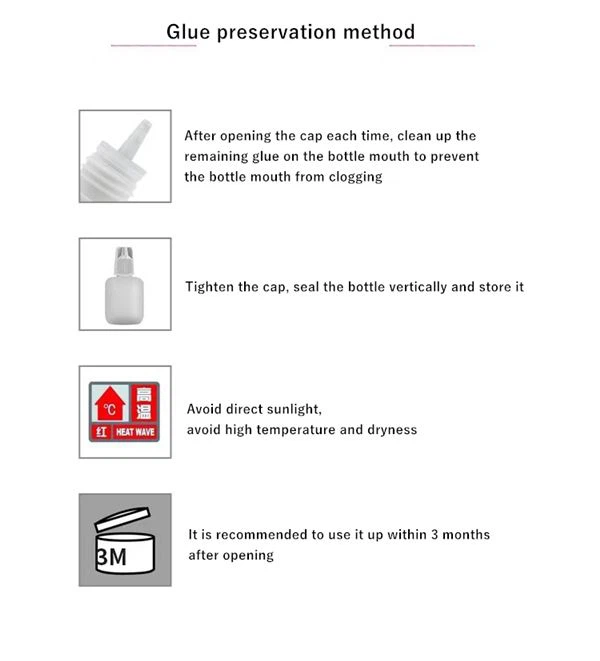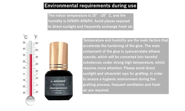 Temperatur og fuktighet er hovedfaktorene som akselererer herding av limet. Hovedkomponenten i limet er cyanoakrylatetancyanid, som vil bli omdannet til skadelige stoffer under sterk høy temperatur, noe som krever mer oppmerksomhet. Unngå direkte sollys og ultrafiolette stråler for poding. For å sikre et hygienisk miljø under podingsprosessen, er hyppig ventilasjon og frisk luft nødvendig.